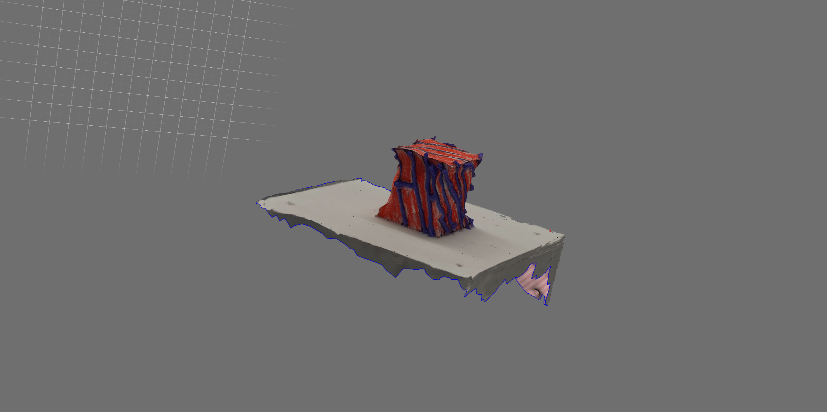 Hier werden flache, zweidimensionale Formen modifi ziert, um ein 3D Netz ('Mesh') aufzubauen.